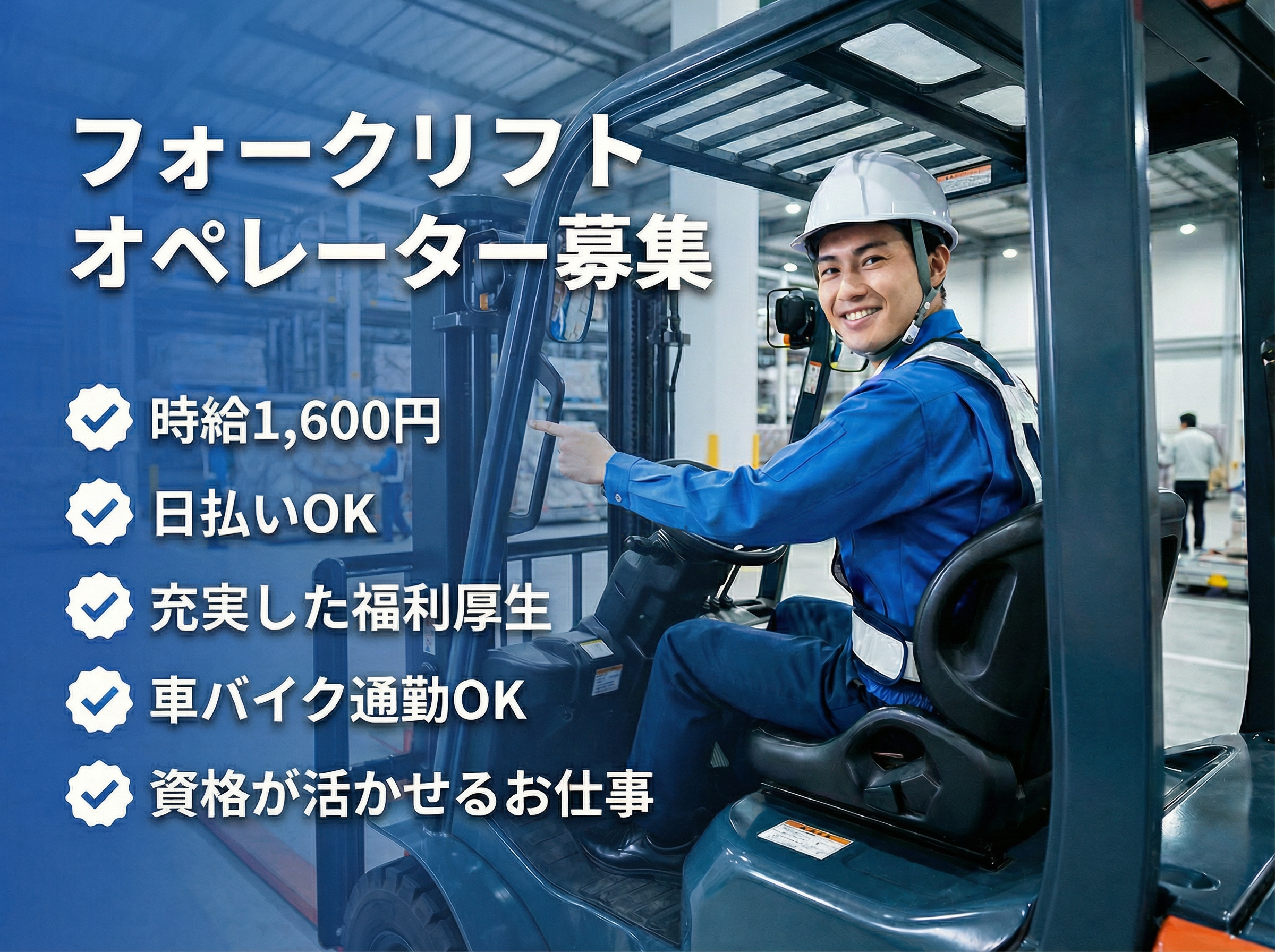 No.8577【1名募集 時給1,600円 長期安定】フォークリフトで家…