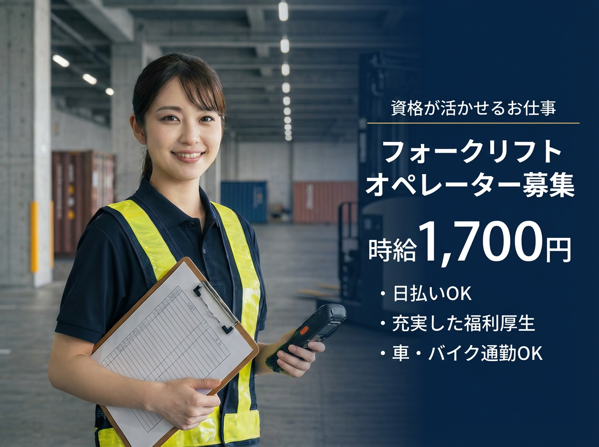 【時給100円アップ!フォーク未経験OK】 荷受け、検品や出荷準備等の倉庫内作業全般を担当いただきます。 具体的には、 フォークリフトを使用した服飾パーツや小物・靴資材等の荷受、 検品、梱包等出…