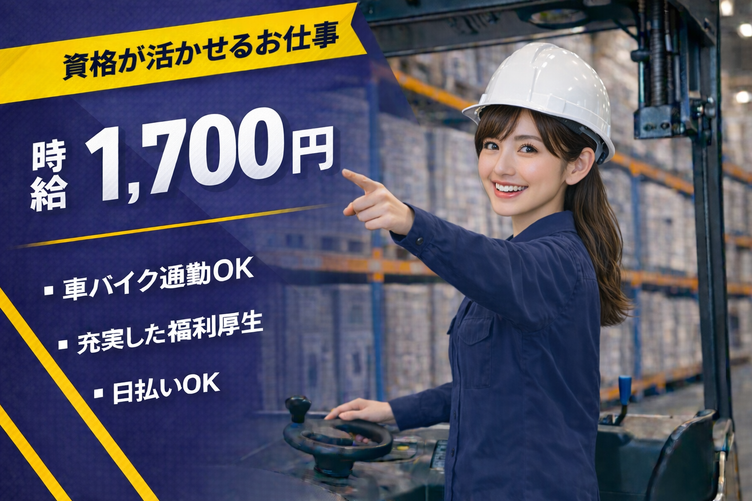 No.8578【1名募集 時給1,600円 長期安定】フォークリフトでペ…