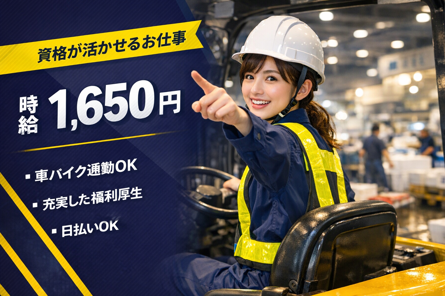 【仕事内容】 大田市場で1.5トン車のガス式カウンターフォークリフトを使用して入出荷作業。積み下ろしやパレット単位での搬送、出荷に合わせた加工作業も携わります。カウンターフォークリフトの乗車率は6割で残業は基本ありません。尚、休憩時間に入るタイミングは多少前後する可能性はあります。 ~1日の仕事の流れのイメージ~ 18:00 - 22:00 入出荷 積み下ろしや搬送 22:00 - 23:00 休憩 23:00 - 以降 入出荷 積み下ろしや搬送 加工作業 現場スタッフの方々が丁寧にお教えしますのでどうぞご安心ください。周りの先輩スタッフや社員、もちろん私たち営業窓口も全力でサポートいたします。あなたのスキルをここで活かしませんか? |
